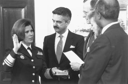 In 1990, President George H. W. Bush appointed Antonia Novello as the 14th Surgeon General of the United States, making her the first woman and the first Hispanic American to hold the position. As Surgeon General, she became a highly visible national advocate for public health, with a style that combined medical expertise with an approachable, direct way of speaking to the public.